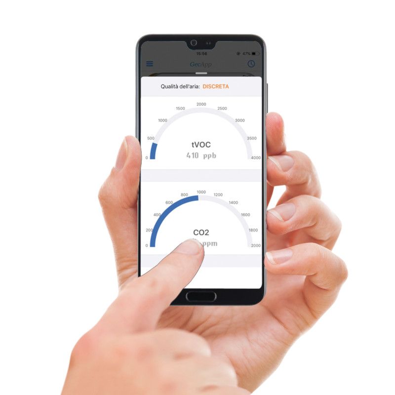 Oltre alle funzioni tipiche dei cronotermostati "intelligenti", Dalì sorprende con una caratteristica che lo rende unico sul mercato, il monitoraggio della salubrità dell'aria nell'ambiente domestico.